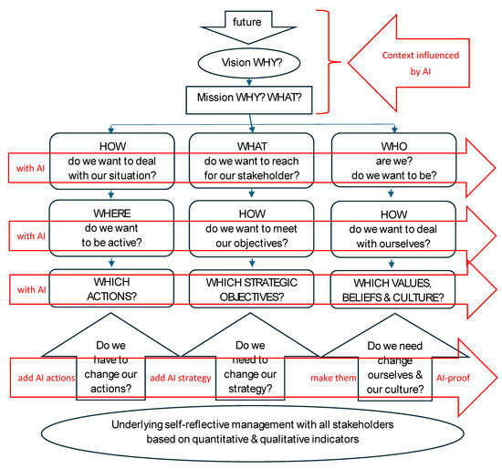 The four main research questions formulated in this article are: how does AI and AI tools influence HE(Is) in its mission, organization and context; should AI and its applications then be regarded as an strategic objective or only as a tool to help to realize the existing non-AI strategy; how are AI and the use of AI tools, as developed and described in an AI strategy, best managed to be adopted and integrated in an effective and responsible way; and finally which influence does AI and its tools have on the leadership and culture? In order to answer those questions in an argued and informed way the article describes first our contemporary times, and the leadership needed, then delves into the history and the development of AI and its tools, and investigates the current and future attitudes towards, degrees of implementation and uses of AI and its tools among the internal and external stakeholders of HE(Is). In this way the research and analysis of the article endorses the concept of the stakeholders’ model as underlying concept of good governance and successful strategy building and performance HE(Is).