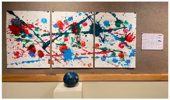 Paint Balls. Note: Bob, Boo, and Jamos’ data visualization from Cycle 1 related to their favorite soccer players and soccer’s role in high-school sports. Notice the expressive paint marks are balanced across the composition—in keeping with action painting conventions.