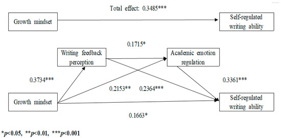 Writing feedback perception and academic emotion regulation sequentially mediate the interplay between mindset and self-regulated writing ability.