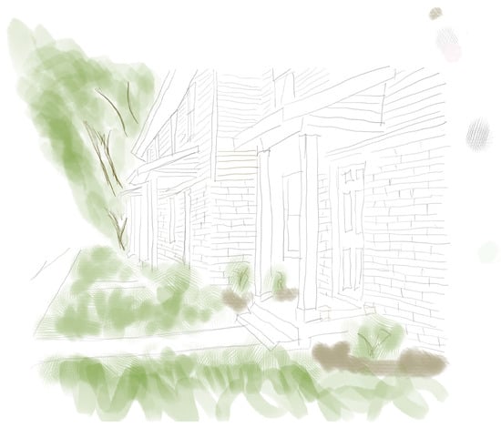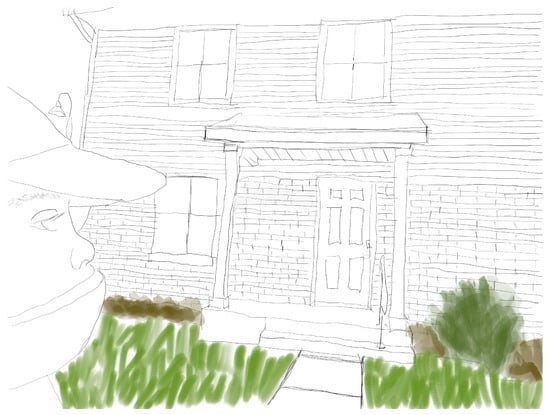 The findings reveal how Aniyah and Aliyah engage in the practice of spatial reclamation through their art (e.g., heart maps), photographs (e.g., turned into line drawings), and the stories they share about their home during a walking tour. This work locates key moments of disruption in the nexus of practice, specifically in the ways their stories of home collide with narratives from historical archives. The findings emphasize the pliable literacy practices (e.g., storytelling and restorying) that children employ to spatially reclaim. For this section, the detangling of the findings into a separate discussion became untenable. This tension is supported by Bhattacharya’s (2017) qualitative perspectives, which emphasize that researchers can never provide a true representation of the data. Specifically, she explains that she uses “re-presentations because the participants’ stories are a re-presentation of what they told you [me] during the interviews” (p. 158). Through rich narrative and thick description, qualitative interpretations illuminate the ideas explored by the researcher. Within this rich description, the findings will be threaded with analysis as I work to create the truest “re-presentation of what they [Aniyah and Aliyah] told you [me] during the interviews…”, as well as the stories shared on the walking tour (Bhattacharya, 2017, p. 158). As such, I weave Aniyah’s and Aliyah’s acts of spatial reclamation with their heart maps and the stories they share prior to and on the walking tour. Because the data presented in this section focuses on ‘space,’ I have included a line drawing (see Figure 1 and Figure 2) of the sisters’ home, based on a photo Aniyah snapped during a walking tour, for their privacy and to further anonymize them. Additionally, I include a line drawing of the tract homes in the Limestone Quarry neighborhood, sourced from the community’s public housing website. To complement these anonymized line drawings, I offer a sensorial description of their home during our walking tour to provide additional context. Thematically, Aniyah and Aliyah spatially reclaim stories of place through love, relationships (e.g., friends and family), and sustenance (e.g., food and the kitchen). These themes act as the illustrative disruptions in the nexus, which then become stories of their spatial reclamation.