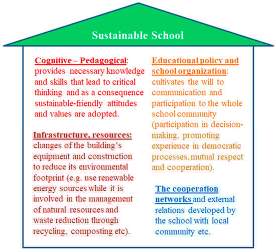 - Demosthenous, Μ. (2023). Sustainable school: The challenge of future. Arts & Humanities Open Access Journal, 5(3), 230–238. [Google Scholar] [CrossRef]