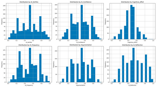 The six core variables were designed based on theoretical models in educational psychology, cognitive science, and AI literacy. For example, the construct AI_Confidence draws from prior work on trust in AI systems and perceived reliability of automated outputs (Marín Díaz et al., 2024; Rajki et al., 2025). Cognitive_effort is based on the literature on metacognitive regulation and mental engagement when interacting with external tools (Flavell, 1979; Kember et al., 2007). Similarly, AI_Reflection and Argumentation are rooted in research on critical thinking and epistemic practices (Chinn et al., 2011; Facione, 2011). These theoretical underpinnings support the internal validity of the constructs used in the segmentation process.