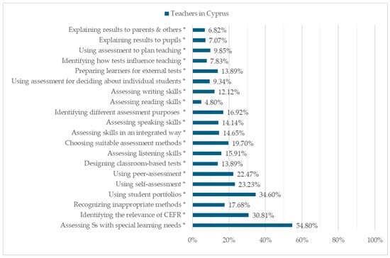 Reported training preferences for different aspects of language assessment in Cyprus. Note: asterisks show significant differences between countries at α = 0.05.