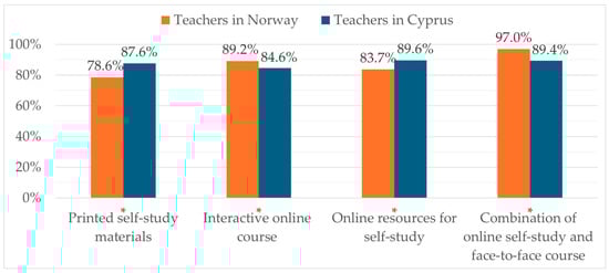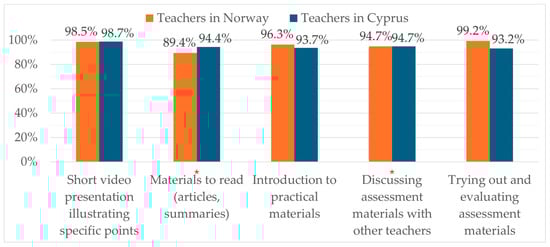 Confidence levels in selecting suitable assessment methods were also significantly lower among Norwegian teachers (58%) than among Cypriot teachers (87%), reflecting their respective pedagogical traditions, U = 14,165.000, p < 0.0005. Norwegian educators demonstrated a stronger interest in professional development in this domain (41% vs. 20%), likely influenced by Norway’s emphasis on inclusive education and formative assessment, χ2(1) = 24.274, p < 0.0005. In contrast, Cyprus’ rigid, standardized assessment culture (Tsagari & Kontozi, 2016) may lead teachers to feel that their existing assessment skills are sufficient and in less need of enhancement.