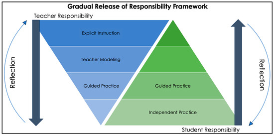 - Fisher, D. (2008). Effective use of the gradual release of responsibility model. Macmillan. Available online: http://srhscollaborationsuite.weebly.com/uploads/3/8/4/0/38407301/douglas_fisher.pdf (accessed on 1 June 2025).