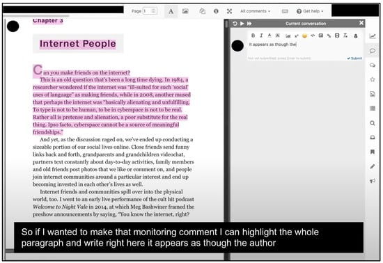 - Adams, B., & Wilson, N. S. (2022). Investigating students’ during-reading practices through social annotation. Literacy Research and Instruction, 61(4), 339–360. [Google Scholar] [CrossRef]