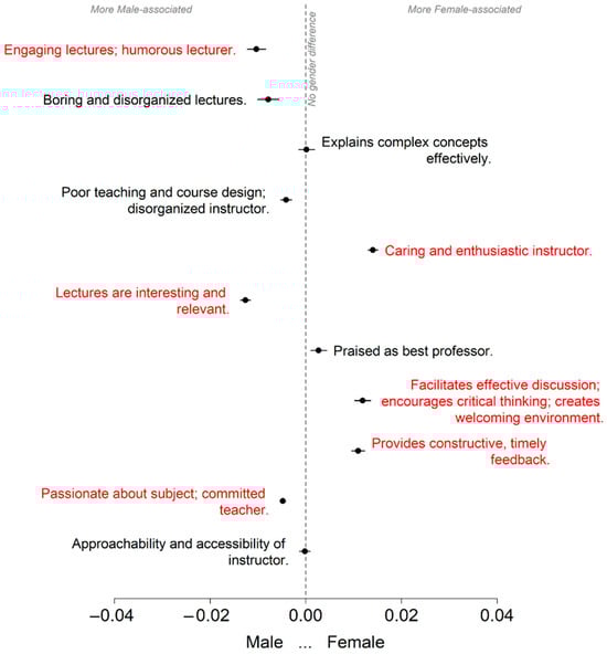 These findings underscore the importance of analyzing comment content not just in isolation, but alongside contextual variables such as gender, course type, and discipline. STM enables precisely this type of nuanced exploration.