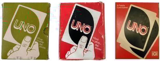 The story of UNO® begins in 1971 when Merle Robbins, an American barber and passionate gamer, created the game. Crazy Eights was a family favourite for Merle and his loved ones, but it came with a common problem: its often-complex rules frequently sparked friendly squabbles, especially concerning cards that involved drawing more or reversing play. To smooth things over, Merle had a brilliant idea: he wrote straightforward instructions right on each card, instantly making the game easier for everyone to understand and enjoy (Lloyd, 2021). The first decks were quite basic, featuring a khaki green colour (see Figure 1), without a registered trademark on the cards. Initially, the game was sold exclusively at Merle’s barbershop (McGlynn, 2016). The Strong National Museum of Play in New York explores the history and significance of play, games, and toys. Visitors to the museum’s exhibition dedicated to the history of games can see numerous editions of UNO®, including the first khaki green boxed deck from the 1971 series (see Figure 1, left).