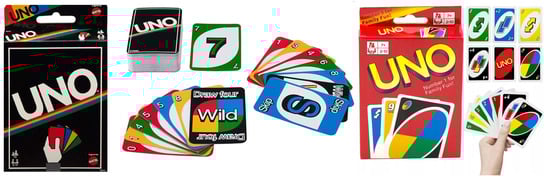 The popularity of the game spread quickly. Robert Tezak bought and redesigned the game in 1973, introducing the red cards and packaging (see Figure 1, middle and right). International Games Inc. (IGI) was founded by Robert Tezak in 1972. Under IGI’s leadership, UNO® truly took off, achieving national prominence by the late 1970s. By then, you could find it in big stores like Kmart and Walmart, and annual sales had skyrocketed to eleven million decks by 1980. UNO’s simplicity, colourful design, and energetic gameplay have made it a household staple, appealing to a broad audience across generations (McGlynn, 2016). In the 1980s, the game experienced remarkable sales growth, and despite receiving offers from numerous toy and game manufacturers, Tezak retained the rights until 1992, when Mattel officially acquired the rights to UNO®. A major turning point in the game’s popularity happened in 1997 when Mattel started licensing popular franchises and adding them to UNO®. Figure 2 shows a retro and a modern version of the deck.