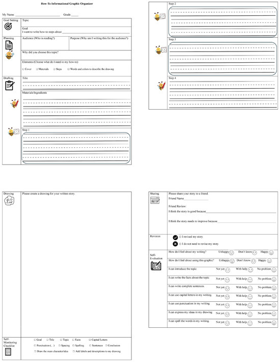 - Hughes, M. D., Regan, K. S., & Evmenova, A. S. (2019). A computer-based graphic organizer with embedded self-regulated learning strategies to support student writing. Intervention in School and Clinic, 55(1), 13–22. [Google Scholar] [CrossRef]