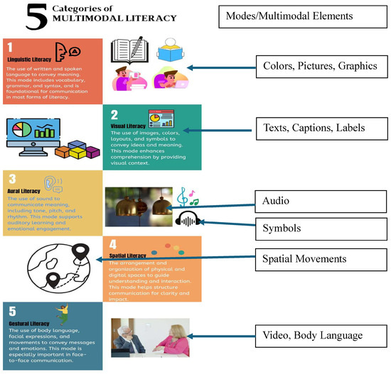 - Si, Q., Hodges, T. S., & Coleman, J. M. (2022). Multimodal literacies instructions for K–12 English speakers and English language learners: A review of research. Journal of Literacy Research and Instruction, 61(3), 276–297. [Google Scholar] [CrossRef]