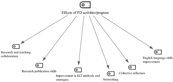 From the interview analysis, it was found that the effects of PD programs on EFL instructors are various. To answer our research question about “How do professional development programs impact EFL instructors in higher education institutions?”, we display the themes found in the analysis as follows (see Figure 1):