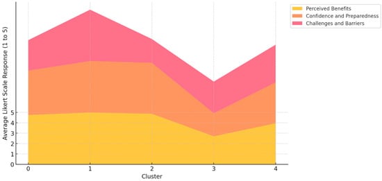 | Figure 3 | Stacked area for survey dimensions across clusters | Core result, supports RQs 1–3 |