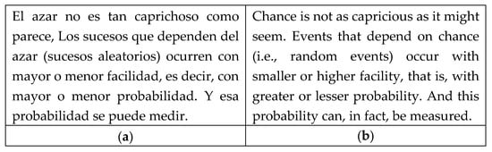 - Gómez-Torres, E., Ortiz, J. J., Batanero, C., & Contreras, J. M. (2013). El lenguaje de probabilidad en los libros de texto de Educación Primaria. UNIÓN, 9(35). Available online: https://www.revistaunion.org.fespm.es/index.php/UNION/article/view/774 (accessed on 1 July 2025).