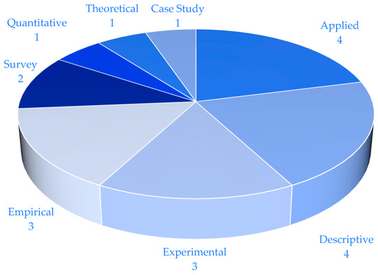 Upon reviewing the 19 studies, empirical and applied methods were the most common, each appearing four times. Empirical studies rely on real-world data collection and analysis, providing practical insights into how technology is applied in school administration. Applied studies focus on the practical implementation and evaluation of technological solutions in educational contexts, demonstrating a strong emphasis on real-world applicability. Experimental methods were used in three studies, involving controlled settings to test specific hypotheses about the impact of technology, thereby providing rigorous evidence of causal relationships. Survey methods were employed in two studies, useful for gathering data from a wide range of respondents, such as school administrators, teachers, and students, to understand their perceptions and experiences with technology in school administration. Each of the remaining methodologies—quantitative, theoretical, descriptive, and case study—appeared once. Quantitative studies use numerical data and statistical analysis to measure the impact of technology. Theoretical studies aim to develop or test theories related to the application of technology in school administration. Descriptive studies provide a detailed account of a particular phenomenon or situation, while case studies offer an in-depth analysis of a single case or a small number of cases to understand the complex interactions between technology and school administration (see Figure 4).