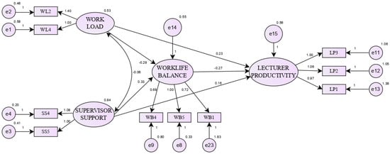 Building on the identified research gaps and the State of the Art in academic productivity research, this study aims to assess the extent to which workload and supervisor support contribute to lecturers’ work–life balance and productivity. We propose a comprehensive structural equation model that examines both direct and indirect relationships between these variables, with the following hypotheses: