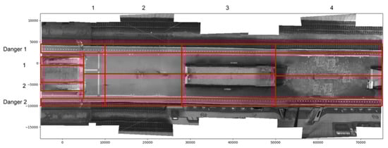 Division of zones, marked in red, for analysis of flux and density set up by Team 1.