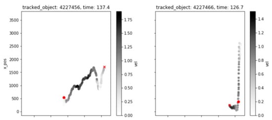 To answer this question, Team 1 created animations of the pedestrians “to identify trends in the flow of people that help us understand the social system”. Thus, they indicated in the report that “code was written that assigned to individual pedestrians either the label ‘onboarding’ or ‘offboarding’”. One of the animations produced by Team 1 is shown in Figure 6.