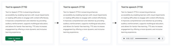 The front-end interface supports accessibility-first rendering, integrating HTML5 landmarks, ARIA roles, and real-time toggles for text-to-speech, language translation, or contrast adjustments. Content authored or uploaded by teachers is parsed and automatically enhanced with structural and semantic annotations, reducing the burden on educators who may not be accessibility experts. This aligns with universal design principles, ensuring that content adapts not only to user preferences, but also to assistive technology requirements.