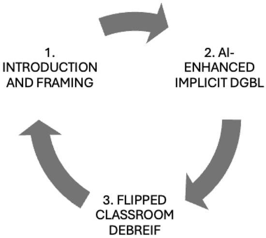 Figure 1 illustrates learning as a continuous cycle of framing, playing, and reflecting. The learning sequence begins with an introduction and framing session in which the teacher reviews the two core pillars, orients students to the game world, and provides any necessary reading or preparatory materials. Students then enter the AI-enhanced implicit DGBL environment, where they explore, collect artifacts, interact with NPCs, and make consequential decisions. Finally, students reconvene in small groups to share and compare in-game experiences, engage in guided discussions that draw explicit connections to historical concepts, and explore real-world applications of their insights. Those reflections then feed back into the next framing session, deepening understanding in each loop through the cycle. This process of framing, playing, and reflecting ensures that students have structured opportunities to articulate and transfer their learning.