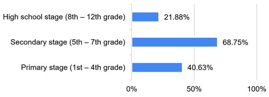 For the survey, the authors interviewed thirty-two school teachers who are experienced in STEM education. Six of them were men, and twenty-six were reported to be women. Fourteen participants had more than 20 years of teaching experience, while only eight reported having less than 10 years of experience as teachers. Seven of our respondents (i.e., around ¼ of them) were from cities and towns in the country, and the others were from the capital; hence, the respondents’ distribution provided a general overview of the country’s schools, including those in rural areas, small towns, and the capital.