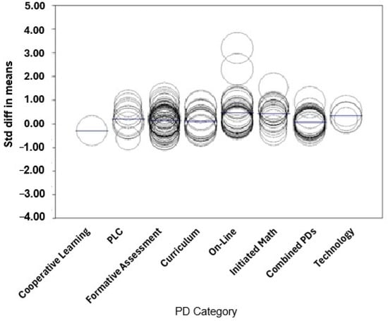 - PD Category refers to professional learning communities (PLCs), formative assessment, curriculum, online/video-based, reform-initiated math, PD approach, cooperative learning, or technology describing the thematic area or framework around which the PD was organized. PD approach refers to studies with PD programs that did not fit into predefined categories and did not specify the type of PD delivered but were activities aimed at improving instruction or enhancing teacher skills and knowledge (Desimone, 2009).