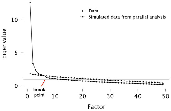 - Ledesma, R. D., & Valero-Mora, P. (2007). Determining the number of factors to retain in EFA: An easy-to-use computer program for carrying out parallel analysis. Practical Assessment, Research, and Evaluation, 12(1), 2. [Google Scholar] [CrossRef]