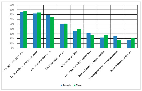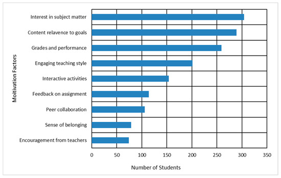 - Motivations (multi-select list, e.g., interest, career relevance, grades, teaching style, and interactive activities);
