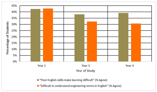 - Li, M., & Pei, L. (2024). Academic language-related skills challenges for EMI undergraduates: A Chinese context. Acta Psychologica, 247, 104309. [Google Scholar] [CrossRef]