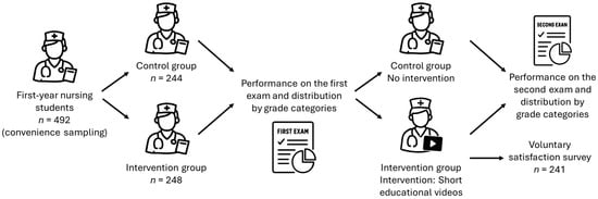The present study aims to design, implement, and evaluate a teaching innovation strategy based on educational videos, examining their use, student satisfaction, and their effect on academic performance. Specifically, it analyzes academic performance before and after implementation in comparison with a control group; evaluates the influence of the strategy on the distribution of students across performance categories; describes the frequency and timing of video viewing in relation to performance on the first examination; and explores the relationship between students’ satisfaction with the strategy and their academic performance. This approach provides practical evidence on the effectiveness of short educational videos in nursing education and establishes a methodological framework for the rigorous evaluation of digital teaching innovations in higher education.