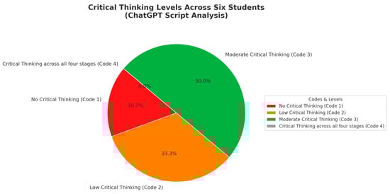 Distribution of critical thinking levels (Codes 1–4) across six students based on ChatGPT script analysis.
