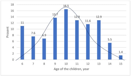 Figure 1 shows that there was considerable variation in the timing of when the school refusal began. It was common for school refusal to start between the ages of 9 and 13, with the most frequent age being 10 years. The incidence gradually decreases after age 10, except for a relative increase at age 13. Additionally, a notable proportion of the children began refusing school as early as first grade (6 years old). This early onset at age 6 and the later peak at age 13 are likely related to transitional periods, such as starting school and moving from elementary to middle school. Thus, we observe a normal distribution with the highest frequency at age 10, alongside a transitional effect that increases incidence particularly at ages 6 and 12–13.