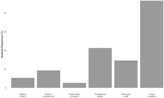 Perhaps most notably, a meaningful segment of students (14.7%, n = 11) moved beyond technical or professional descriptions, invoking more metaphorical or existential perspectives such as “seeing the world.” These responses point to an emerging recognition of optics as a lens for interpreting reality, hinting at the reflective and humanistic dimensions that advanced pedagogies like LSP are designed to surface.