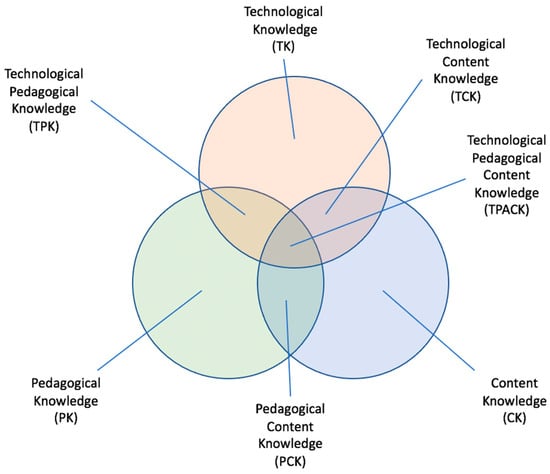 - Mishra, P., & Koehler, M. J. (2006). Technological pedagogical content knowledge: A framework for integrating technology in teachers’ knowledge. Teachers College Record, 108(6), 1017–1054. [Google Scholar] [CrossRef]