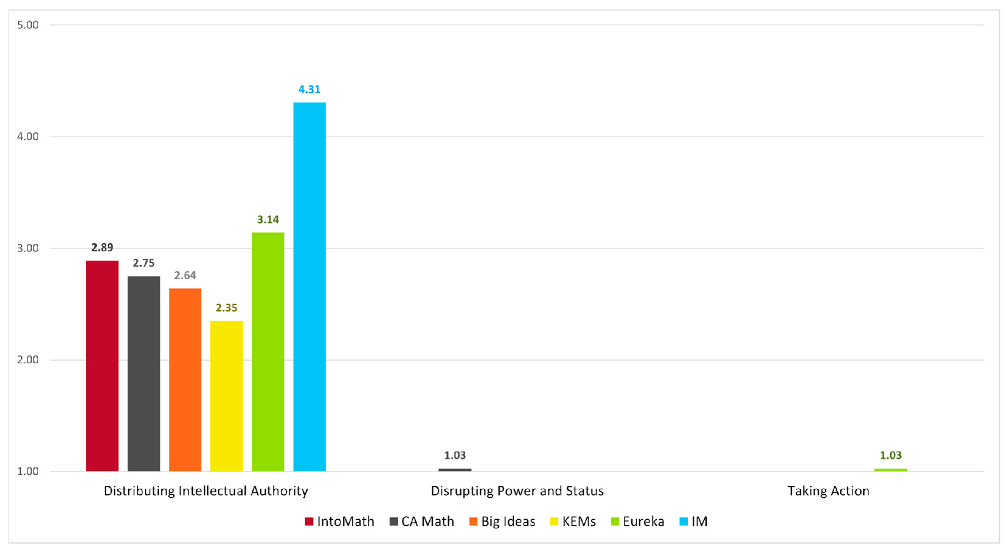 Figure 5). However, most curricula did not include any guidance to address status imbalances nor issues of injustice or social justice. In fact, only one curriculum (CA Math) included an instruction to address power imbalances in one of the lessons reviewed, and only one other curriculum (Into Math) included a mathematical task that addressed social justice in one of the lessons reviewed. These specific examples are described further in the results to our second research question below.