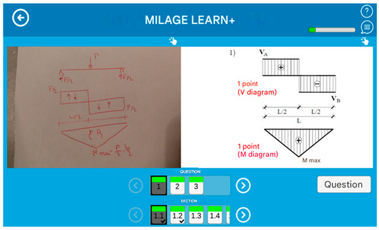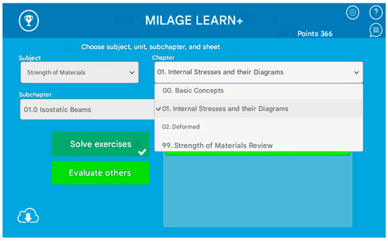 - MILAGE LEARN+ has been used to reinforce theoretical content through gamified learning experiences. The application allowed students to navigate content by levels of difficulty (basic, intermediate, and advanced), allowing students to engage with materials at their own pace and build competence gradually. Each activity included instant feedback upon submission, helping students to monitor and correct their understanding in real time. A peer evaluation feature required students to assess the work of classmates, encouraging reflection and critical analysis. The completion of tasks awarded students with progress indicators and gamified rewards, such as badges or scores, to further enhance motivation. Additionally, the autonomy to select topics and levels facilitates differentiated and self-directed learning.These gamification principles combine to create a dynamic, engaging environment that transforms passive study into an active, motivating process. They were used in several studies to help students in the study of several courses at university level (Dorin et al., 2024; Figueiredo et al., 2020; Fonseca et al., 2021). In this case, different chapters/units and subchapters have been created which correspond to the theoretical contents presented as videos and presentations. Students must answer different questionaries and evaluate the work of their colleagues. In Figure 2, the initial screen that students will find is presented. Here, they can choose the content they will work on. In Figure 3, an example of a problem is presented in which the student uploads their solution and, after, the correct solution is shown.