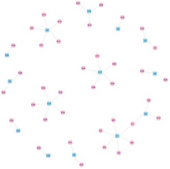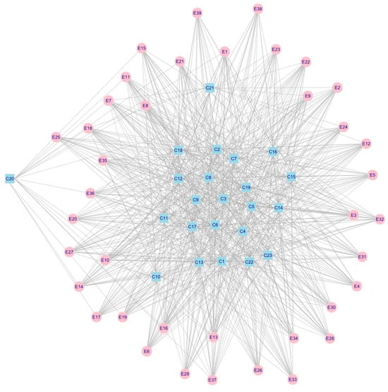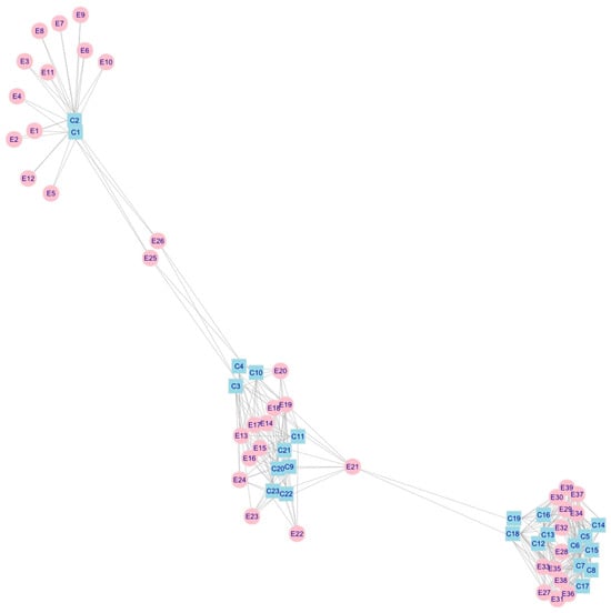 - Borgatti, S. P., & Everett, M. G. (1997). Network analysis of 2-mode data. Social Networks, 19(3), 243–269. [Google Scholar] [CrossRef]