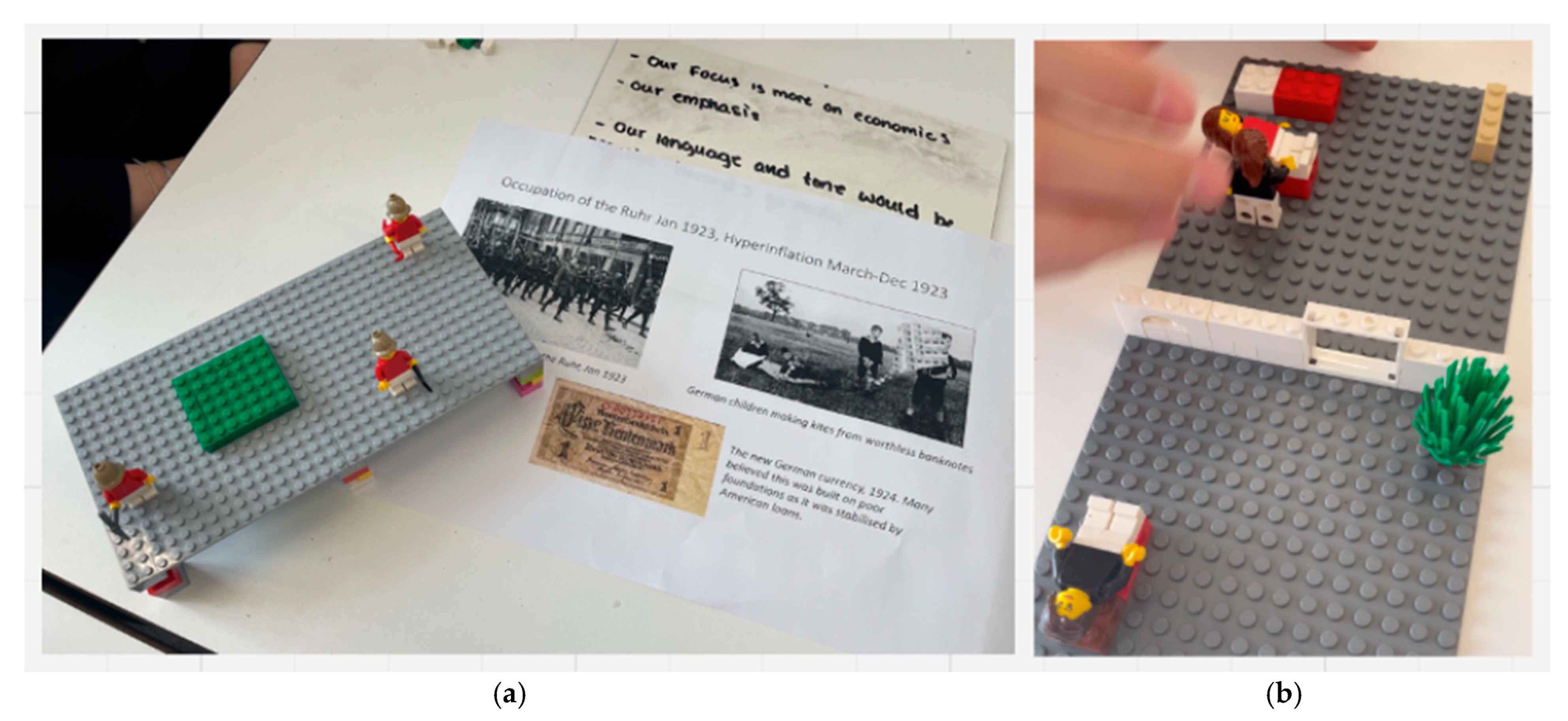 Quote 19, Figure 7a “So … interpretation is based off the crisis that the Weimar Republic faced in 1923 … showed foundations … when they built back up after the occupation of the Ruhr and the hyperinflation is that it is sort of crumbling, is not stable with using gaps in the in the pillars that are underneath the flooring and then these are basically like just soldiers that, um, walk above these gaps and then this thing is supposed to represent like the money that they used … And yes, I do think it is creative as it doesn’t really contain much, but it contains just enough that you can really tell what is going on with all the gaps and stuff…”.(History, Year 10)