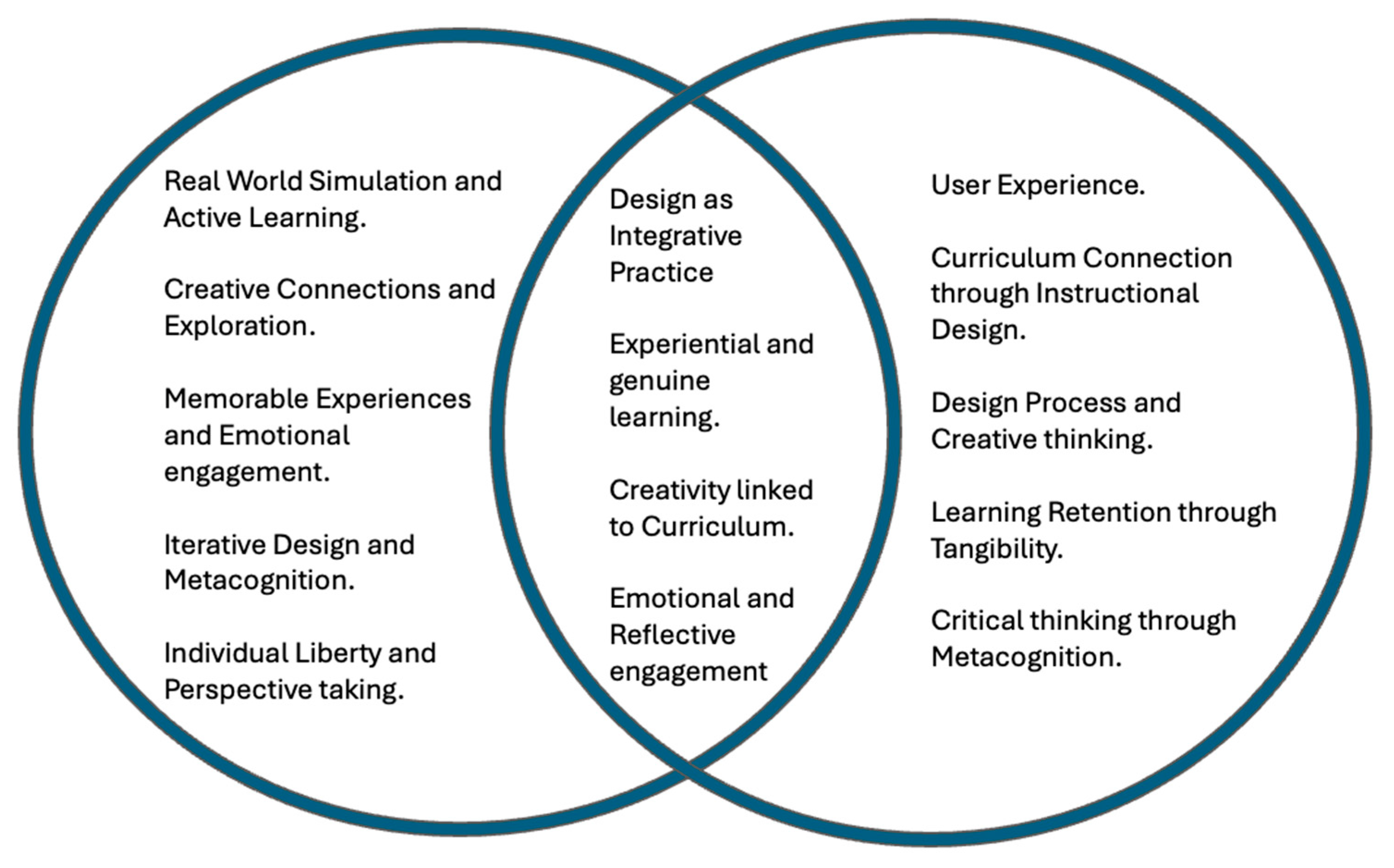 | Creative connections and exploration | Curriculum connection through instructional design | Both link creative thinking to structured learning through design and planning |