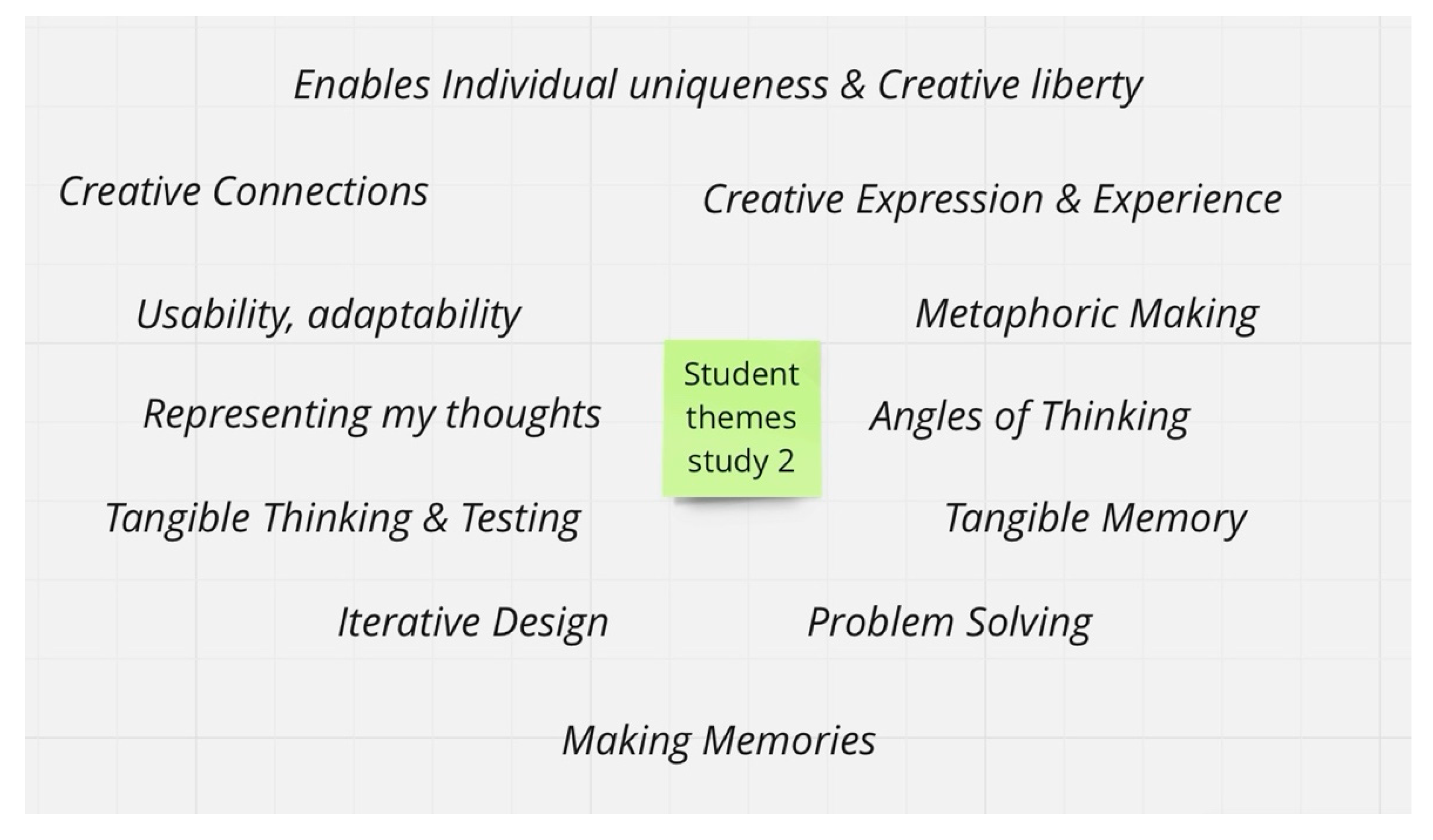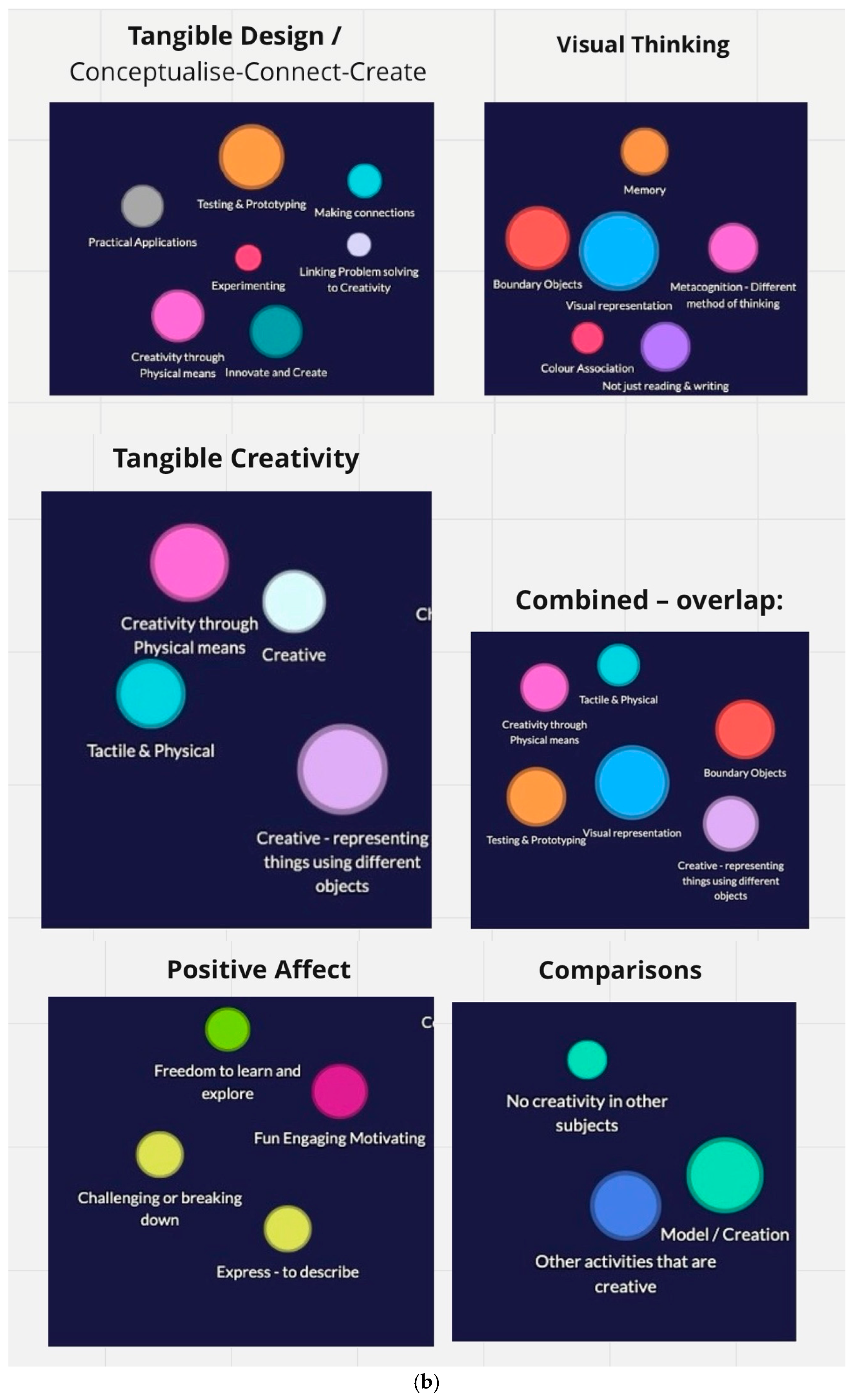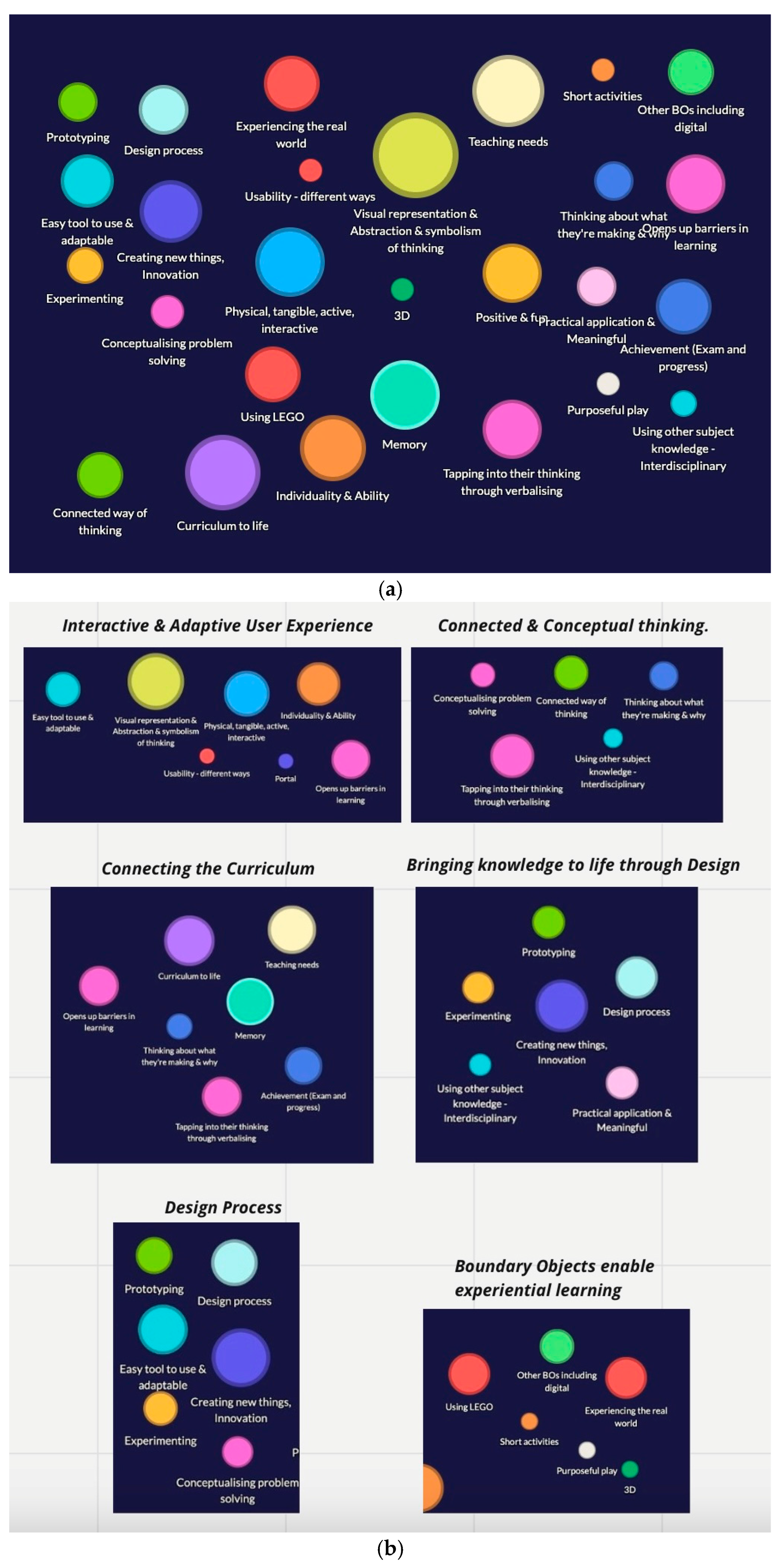 | Memorable experiences and emotional engagement | Design process and creative thinking | Both reveal affective engagement and creative cognition in learning that underlines emotion and intellect. |