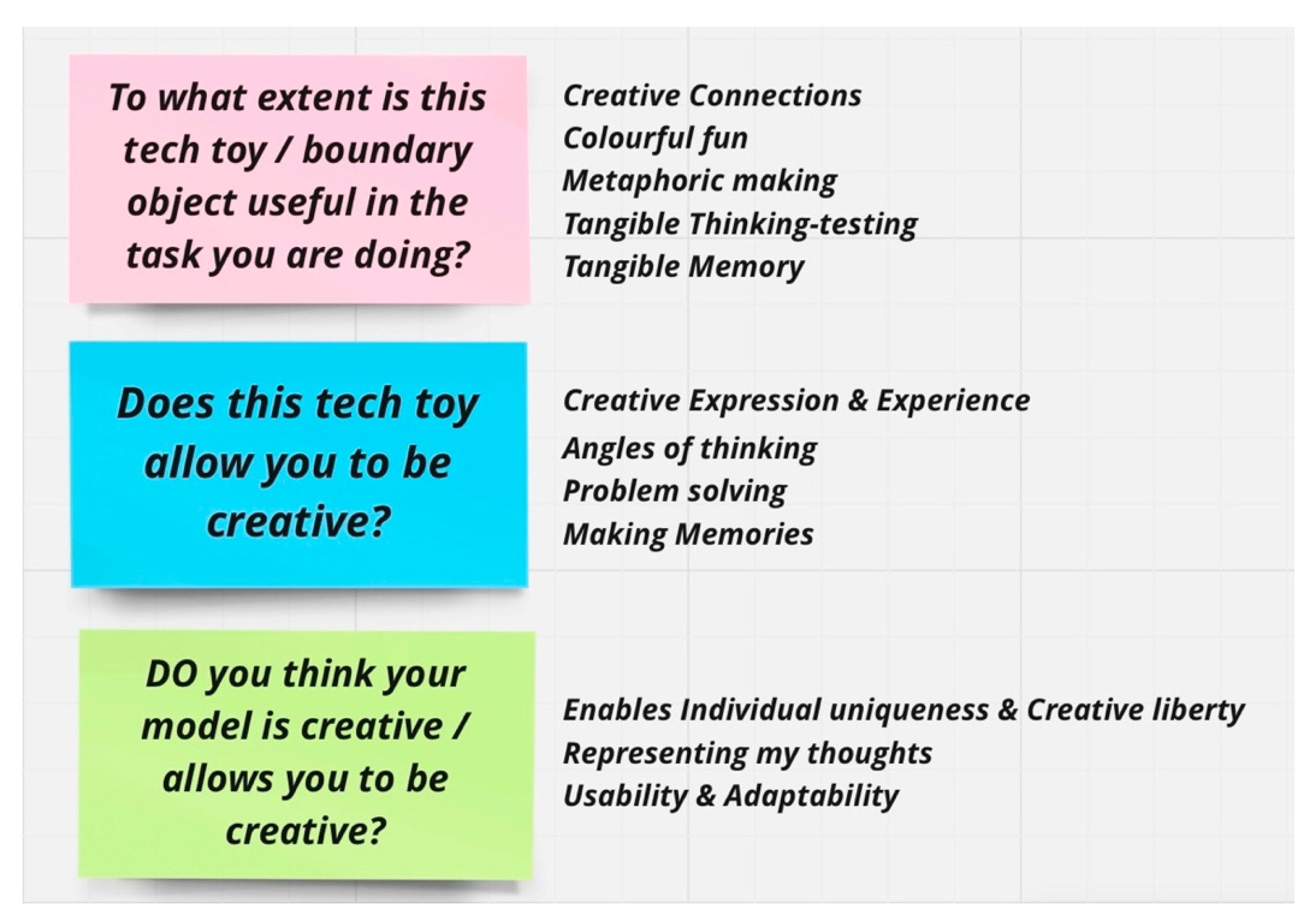 - How do you think the use of a boundary object facilitates the students’ creative thinking (if you think it does) and why if it doesn’t?