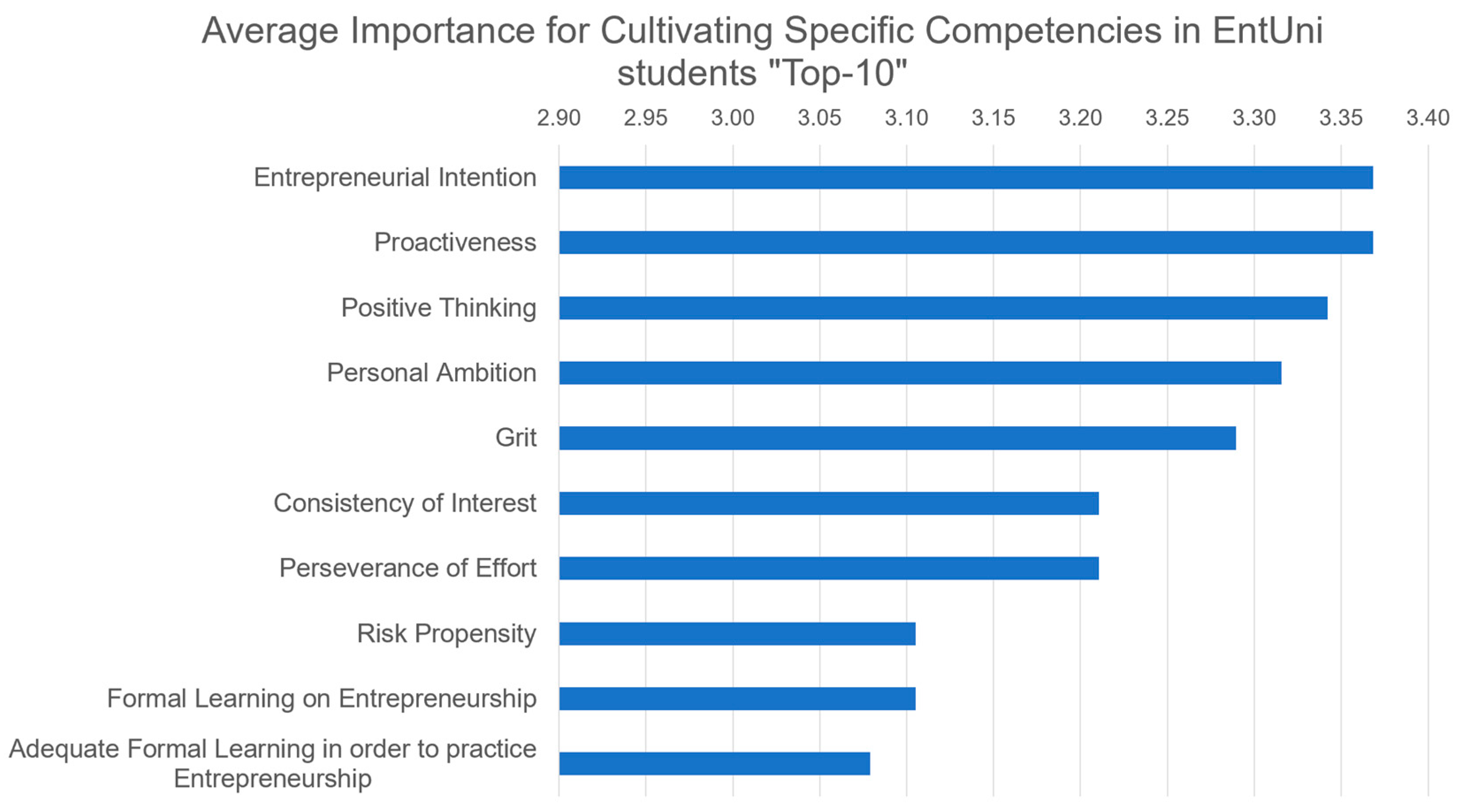 - Market Orientation: While recognized as essential, this competency was rated slightly lower than others, possibly due to the assumption that market awareness develops naturally through entrepreneurial activities.