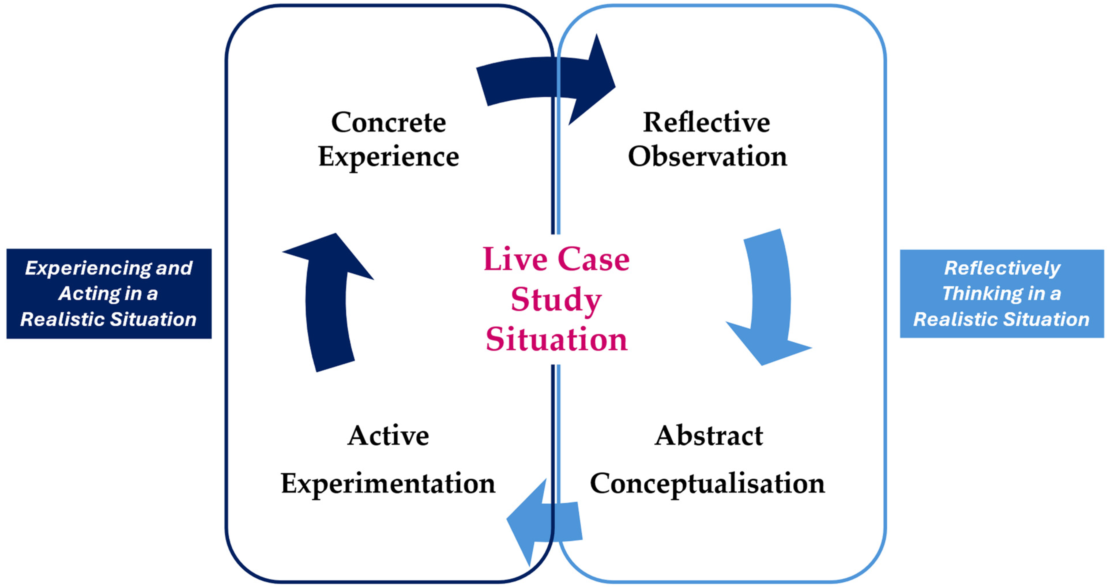 | Experiential Learning | The four stages are: CE, RO, AC, and AE. | Higher-order thinking, critical reflection, transferable skills, and contextualised knowledge were developed. | Scaffold each stage: CE (contextual data), RO (probing questions), AC (alternative frameworks), AE (safe testing environment) |