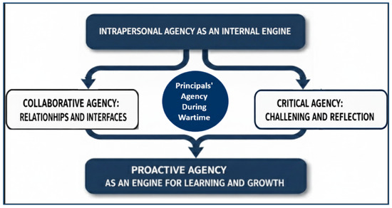 In light of the research question, which focused on the question: How do evacuated school principals perceive their capacity to initiate change during wartime, and in which areas? four central domains of principals’ agency emerged: intrapersonal agency, critical agency, collaborative agency, and proactive agency.