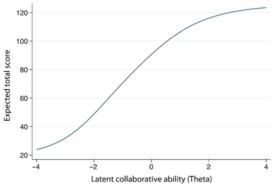 The IRT results demonstrated the test and item discrimination parameters of the CoSS. Regarding test item difficulty, based on the test characteristic curve (Figure 3), as students’ collaborative ability increases, the expected total score also rises. This indicates that the whole test accords with common sense and effectively measures students’ collaborative skills.