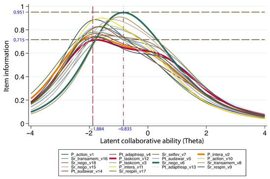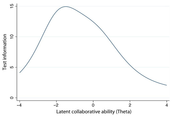 The test information function represents the summed information provided by all items at a given ability level, with higher values reflecting greater measurement precision (Figure 4). The peak of the test information function curve occurs around Theta = −1.5, suggesting that the scale provides the most information and achieves the highest measurement precision for students with below-average levels of collaborative skills.