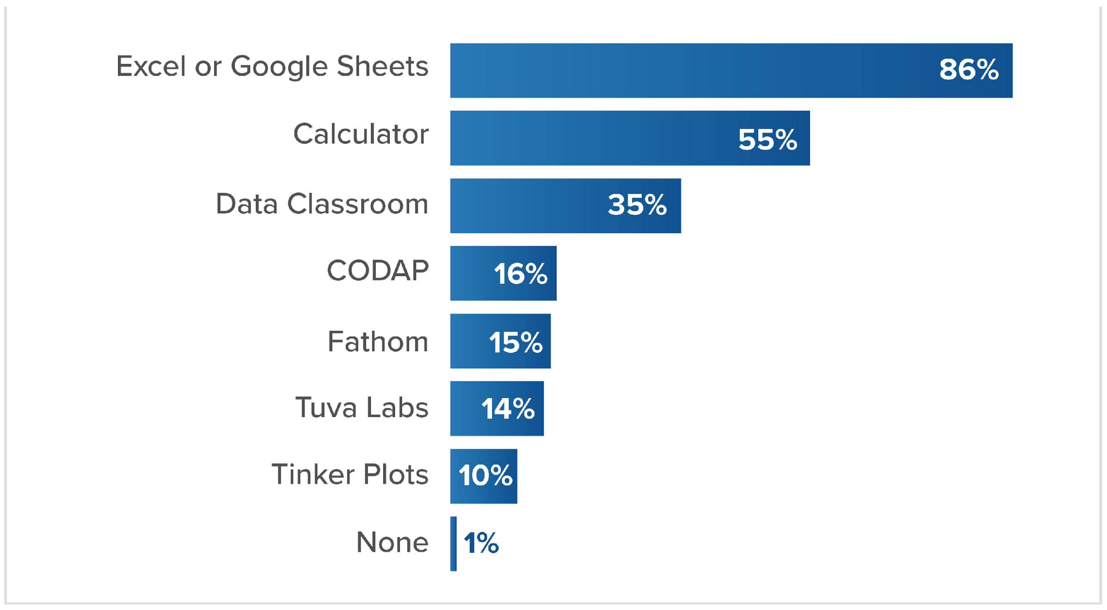 Figure 4. Percentage of educators using available technological tools for data representations.