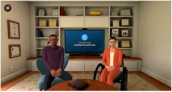 - Smith, M. J., Smith, J. D., Blajeski, S., Ross, B., Jordan, N., Bell, M. D., McGurk, S. R., Mueser, K. T., Burke-Miller, J. K., Oulvey, E. A., Fleming, M. F., Nelson, K., Brown, A., Prestipino, J., Pashka, N. J., & Razzano, L. A. (2022). An RCT of virtual reality job interview training for individuals with serious mental illness in IPS supported employment. Psychiatric Services, 73(9), 1027–1038. [Google Scholar] [CrossRef]
