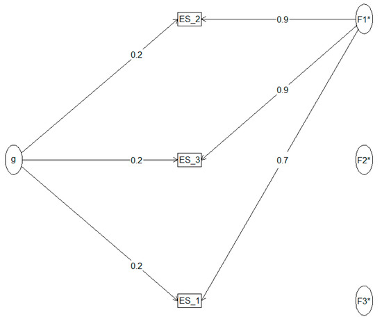 Internal consistency of the UEQ-S pragmatic scale was assessed using McDonald’s Omega. The Omega hierarchical (ωh = 0.03) suggested that 3% of the variance was explained by a general factor, while the Omega Total (ωt = 0.74) indicated acceptable internal consistency. All items were included in the analysis. Factor loadings are shown in Figure 3.