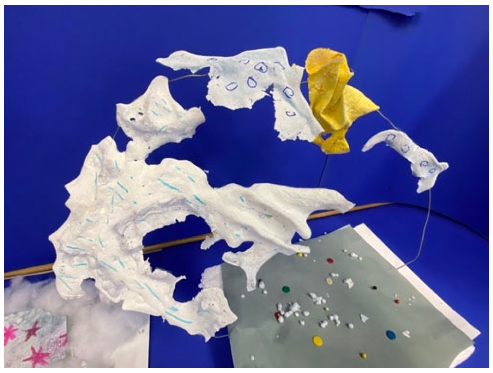 Given the scope of the action research, which was conducted over five cycles across more than eight months (with intervals between cycles), a substantial amount of data was collected. It was therefore necessary to establish appropriate selection criteria for each data type. The primary criterion was to select activities, artworks, and records that best demonstrated and substantiated the intersection between science and fine arts.